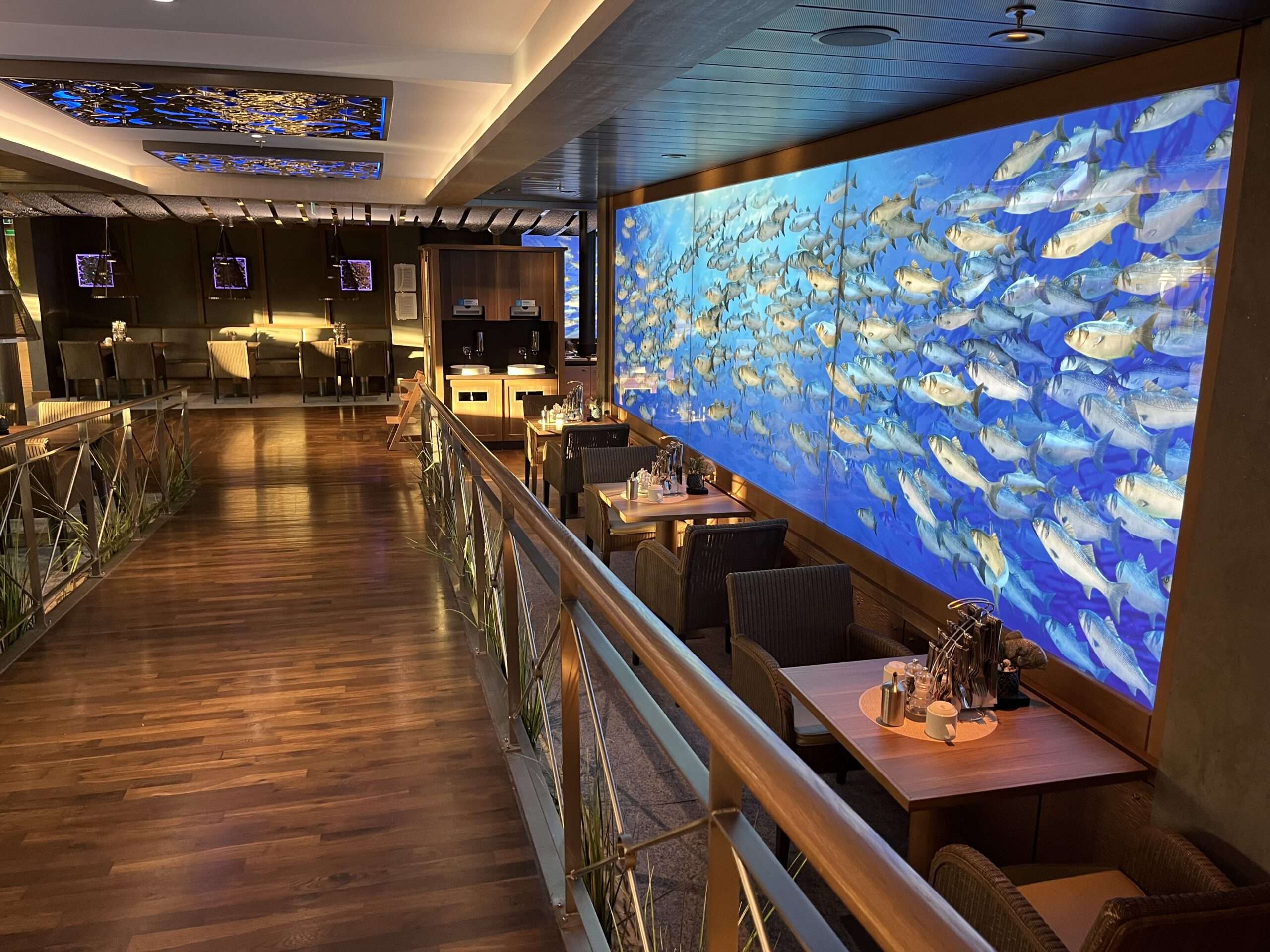 Wir lieben die Buffet-Restaurants, aber wählen für unsere Zeit an Bord von AIDAcosma eher die kleineren Restaurants, wo man im Vorfeld einen Platz reservieren muss. Frühstücken, für uns gerne auf der Kabine, denn wir haben eine eigene Kaffeemaschine und holen uns bei „Brot und Stulle“ etwas Leckeres und genießen unser Frühstück auf dem eigenen Balkon. Von den 17 Restaurants haben uns am meisten das Oceans, das Mamma Mia sowie das Brauhaus und das Yachtclub-Buffet-Restaurant angetan, aber wir waren auch im Fuego, im Best Burger at Sea und im East Restaurant. Das Markt Restaurant auf Deck 5 – in der Sphinx-Klasse von AIDA Cruises unser absolutes Lieblingsrestaurant – fällt in der Helios-Klasse für uns leider durch.
