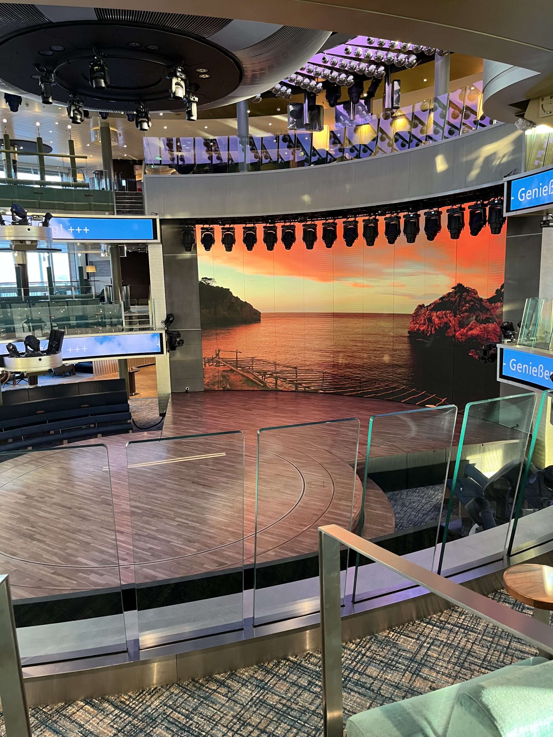 Ein Seetag zu Beginn einer Kreuzfahrt ist das Schönste überhaupt. Kein Programm, kein Ziel – nur das Meer. Wir sitzen an diesem Tag stundenlang auf unserem Balkon, beobachten die Wellen, genießen die Ruhe und das Gefühl des Ankommens. Selbstverständlich geht es auch auf große Erkundungstour über das Schiff, das so viel zu bieten hat. Neben den vielen Restaurants gibt es über 22 Bars, es gibt einen großen Infinity-Pool am Heck des Schiffes mit wunderbarem Blick auf die Heckwelle und natürlich den Beachclub, wo man auch bei schlechtem Wetter den Badespaß genießen kann. Besonders interessant ist dieser für Familien. Ob Kino, Kletterspaß, Wellness und Sauna, Auftritte von Bands und Solokünstlern und des AIDA-Show-Ensembles – für den Gast bleiben keine Wünsche offen, und jeder kann sich genau das heraussuchen, was er präferiert. Das Schiffsleben ist so vielseitig und bietet jedem Gast seine persönliche Nische – egal ob ein Cappuccino im Strandkorb oder die Probe der Artisten im Theatrium, dem Herz des Schiffes.