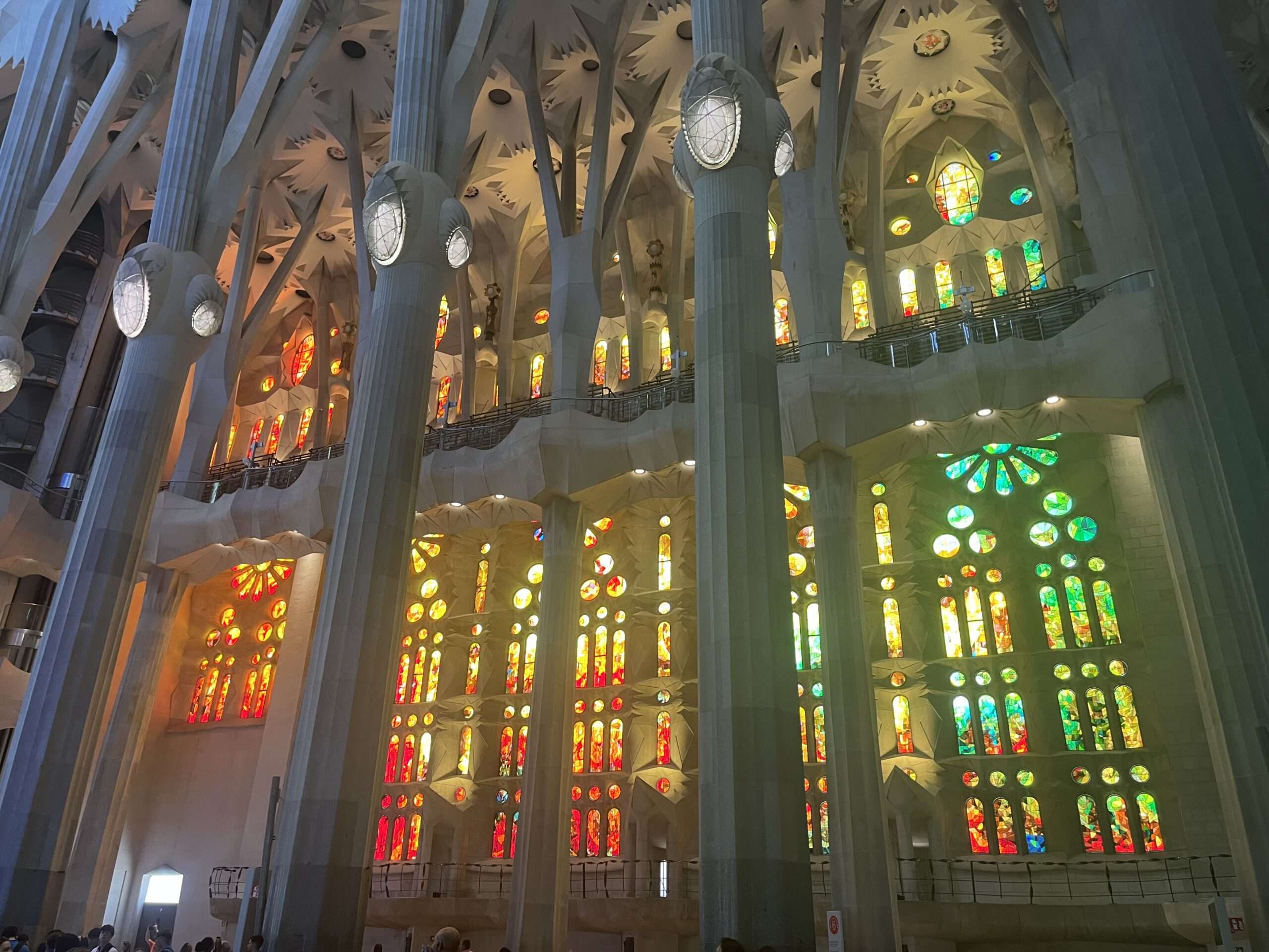 Unser nächster Stopp: Barcelona, die Stadt der Farben, Formen und Lebensfreude. Wir hatten im Vorfeld Online-Tickets für die Sagrada Família gebucht – und das war Gold wert! Keine Warteschlange, kein Stress – einfach zur gebuchten Zeit zum Einlass – und los geht’s. Dieser Bau ist ein Wunderwerk. Die Lichtspiele, die Details, die Höhe – uns verschlägt es den Atem, und endlich sehen wir Gaudis Meisterwerk nicht nur von außen, sondern auch seine Kunst von innen. Über die App der Sagrada Família bekommen wir alle Informationen, benötigen also keinen extra Guide, und wir tauchen ausgiebig in die faszinierende Geschichte des wohl berühmtesten Bauwerks in Barcelona ein. Hier kann man die Tickets für die Sagrada Família über die offizielle Website im Vorfeld kaufen. Das ist eine klare Empfehlung von mir.